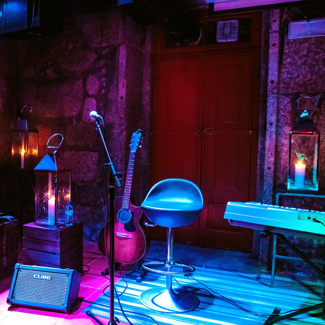 A coffee house with live music in Braga. Today there was an event called “Open Stage” that takes place around here once a month. Excellent conditions, both on stage and in terms of lighting and sound. It’s more of a Rock and Roll venue, but Urraca’s sound went down really well with the crowd. Setlist: “Long Time No See” and “Inescapable Paradise”.