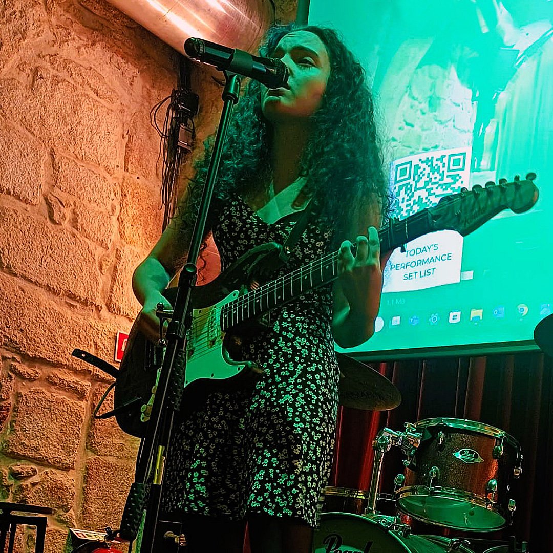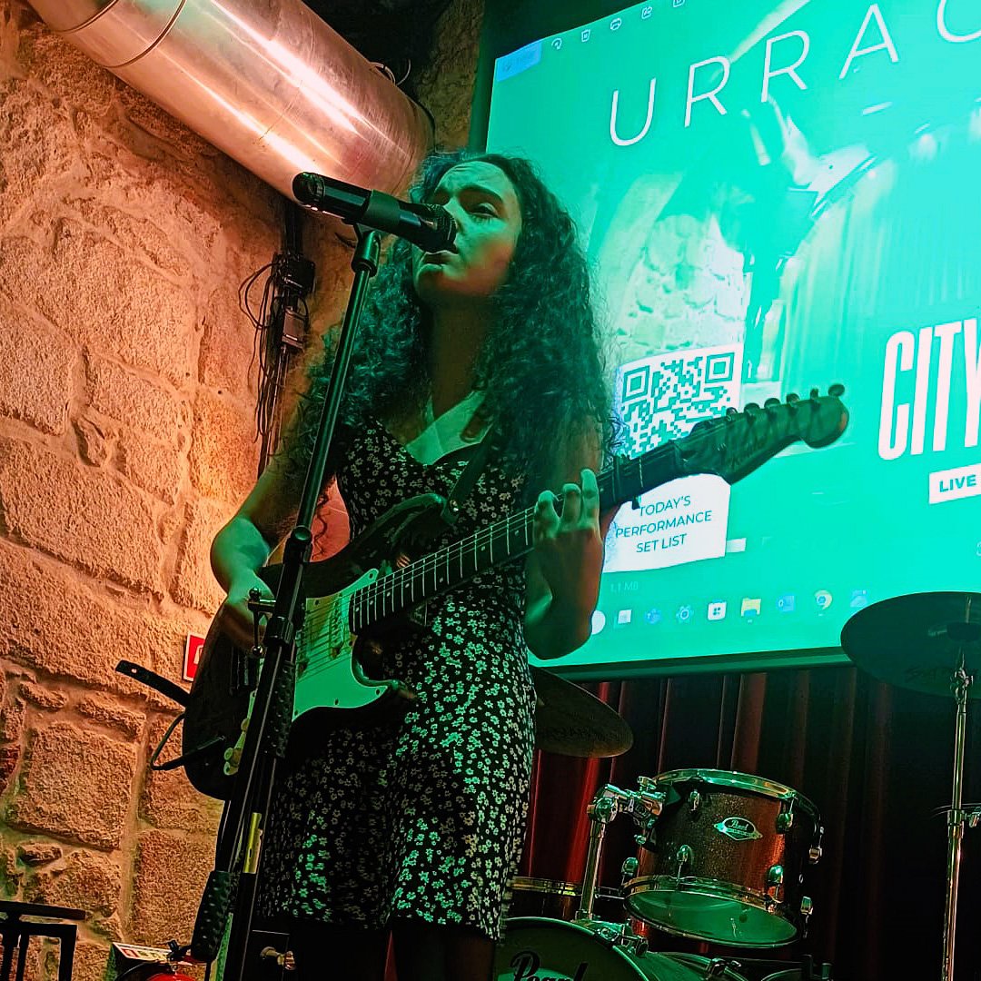 It was a very fun and informal evening. The audience was very engaged. Six songs were performed throughout the night. It was the first time at this bar. Urraca will certainly come back here for another night of performance, especially since the hosts responsible for the event vary. Hosted by: Bruno Santos. Setlist: “Long Time No See”, “Inescapable Paradise”, “Half a Girl”, “Stupidities of the Past”, “Someday” and “Unceremoniously Right”.